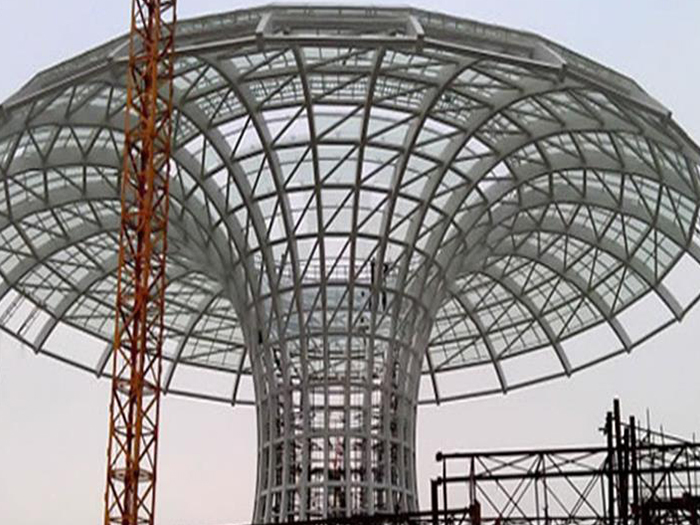 二、球形网架结构因其结构新颖,受力合理,自重轻、用钢量低等优点。如大型体育场馆球形阳泉螺栓球网架、公共场馆球形网架、电厂阳泉螺栓球网架、水泥工业球形网架、仓储物流球形网架、阳泉干煤棚工业球形网架、阳泉收费站阳泉加油站球形网架、展览中心、影剧院、商场、航站楼、候车厅、工厂阳泉车间、仓库、电视塔等球形螺栓球节点网架。国内球形网架结构主要分为:阳泉焊接球节点网架及螺栓球节点网架两种。螺栓球节点网架其构件工厂内加工量较大,现场安装便捷,适用于现场工期紧,阳泉施工条件、用电量受制约,网架形状复杂、阳泉杆件定位困难的异形结构。螺栓球节点球形网架系统基本由阳泉杆件、螺栓球、支撑支座等组成。按照节点形式可分为交叉阳泉桁架体系、四角锥体系、三角锥体系等。支撑方式多为固定支座支撑。对于大面积、大跨度及有特殊受力或伸缩要求的网架结构可采用橡胶支座、滑移支座、球铰支座等支撑形式,以满足结构自身的受力稳定、均衡,便于内力释放等设计要求。